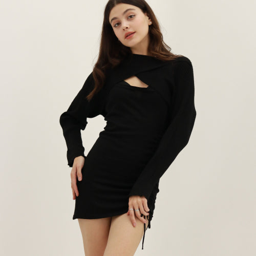 러블리 롱 슬리브 탑 앤드 셔링 숏 드레스