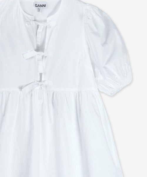미니 코튼 포플린 타이 스트링 원피스 - 화이트 / F9170151
