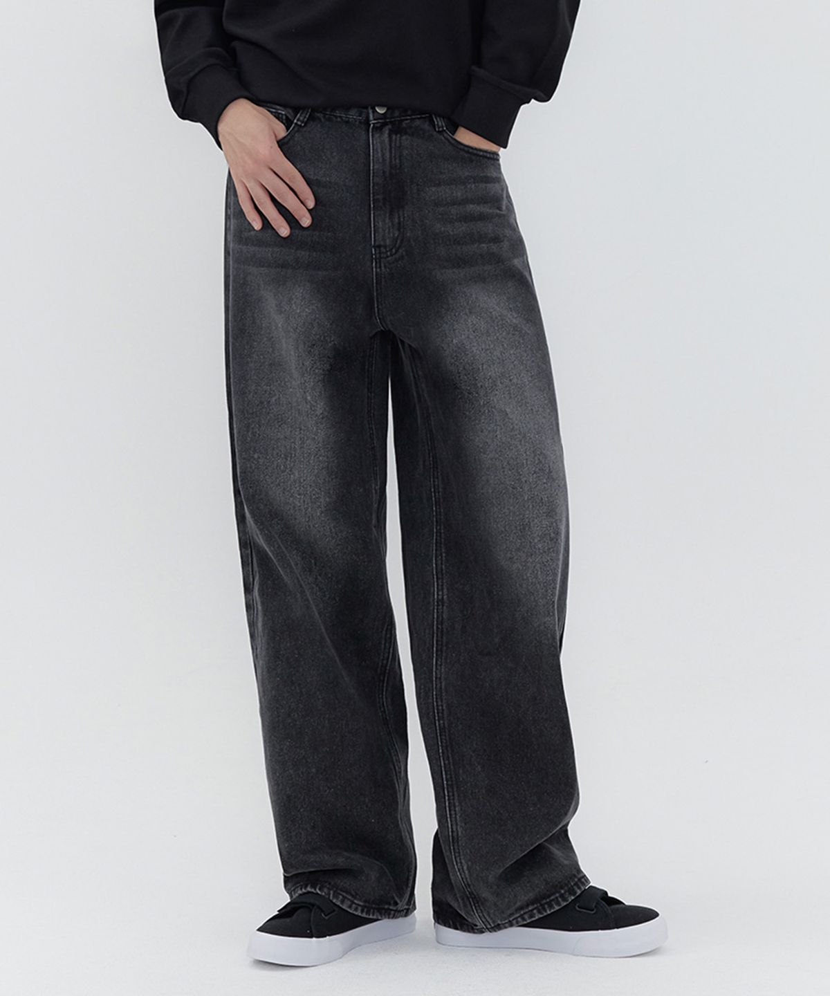 Product Category: Pants > Denim Pants Brand: ACSHI Product Number: MJUA754 Product: Loose Washed Balloon Fit Wide Denim Pants Unisex (Black/Blue) - 37,910