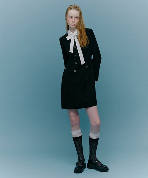 샤네즈 배색타이 트위드 원피스 SWOPOK0100