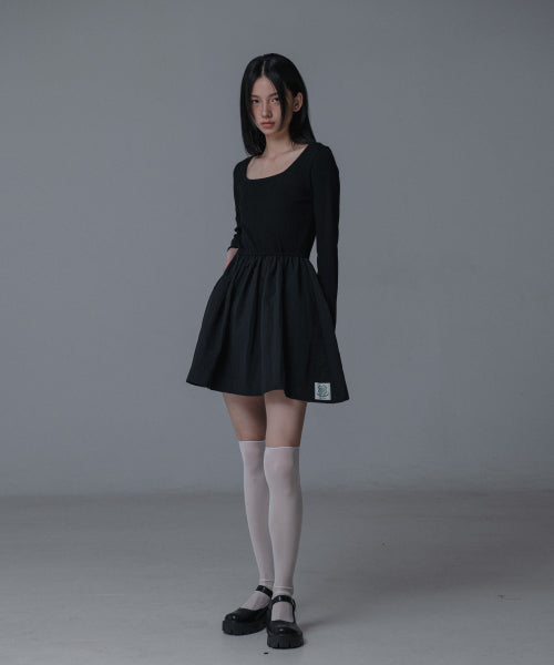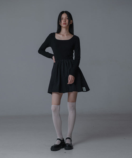 스퀘어넥 슬림 셔링 원피스 (블랙)