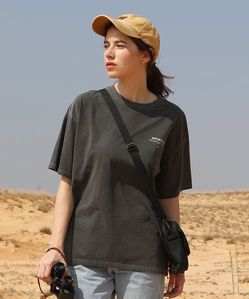 어드벤쳐 폰트 피그먼트 오버핏 반팔티셔츠 다크그레이 FST705