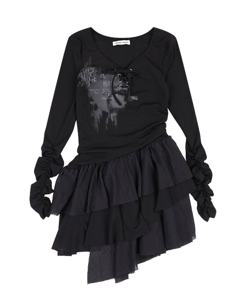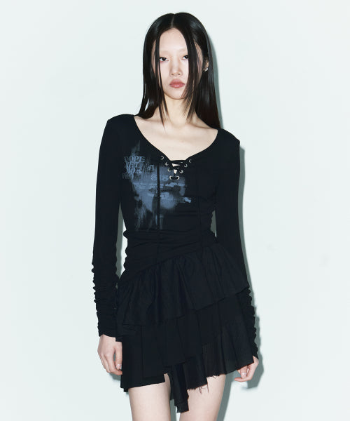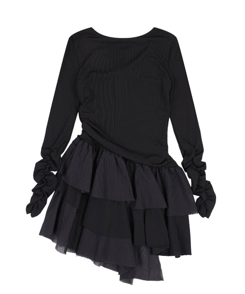 언발란스 플레어 미니 원피스 [BLACK]