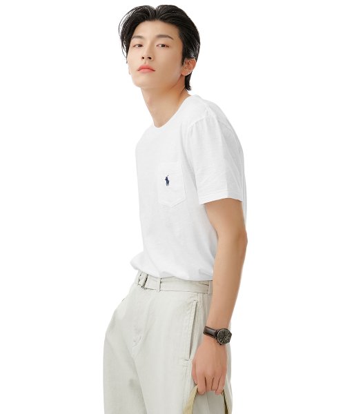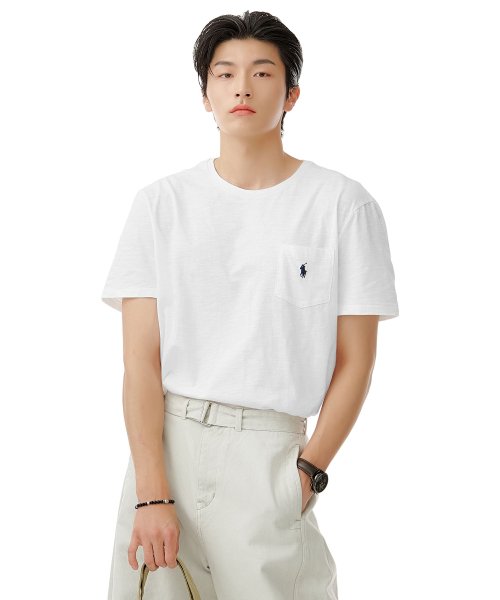 커스텀 슬림핏 포켓 티셔츠 - 화이트