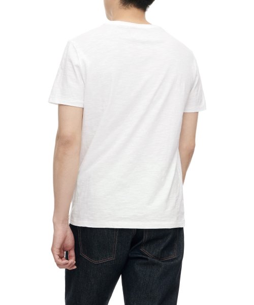 슬러브 면 저지 소재의 티셔츠로, 워싱가공을 통해 완벽한 빈티지 룩 앤 필을 연출했습니다.