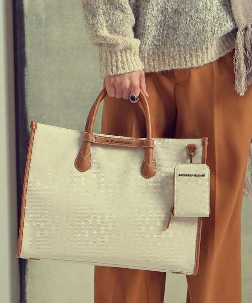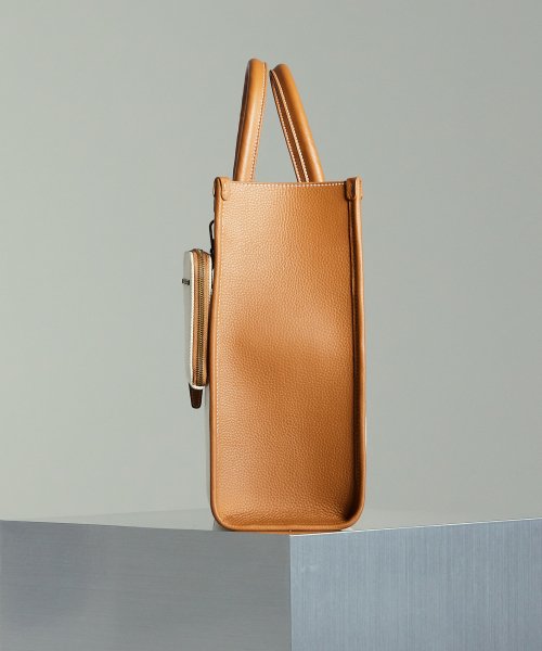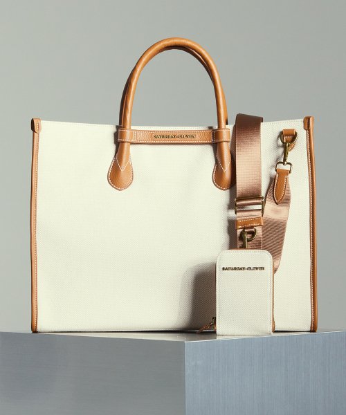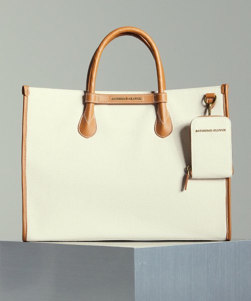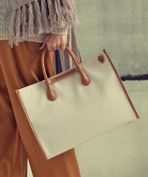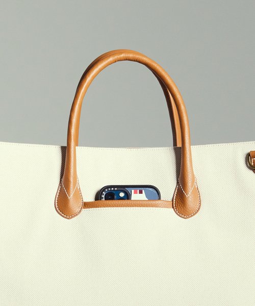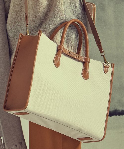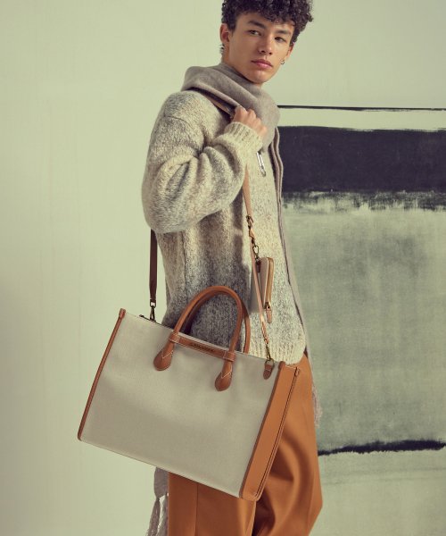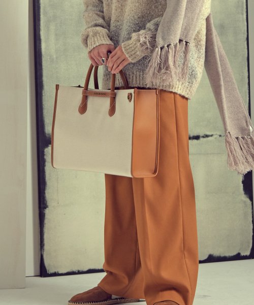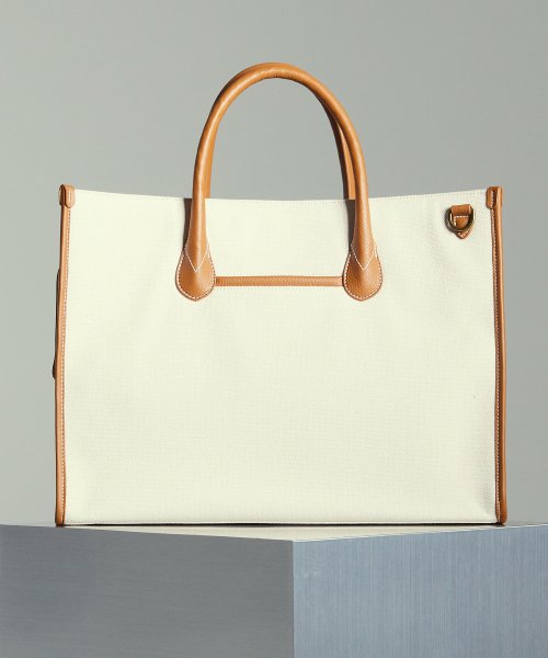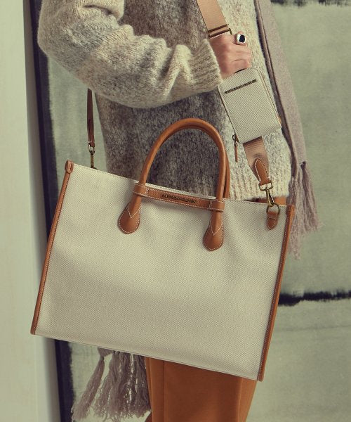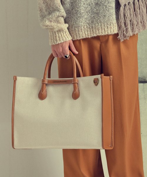 투톤 캔버스 레더 브릿지 토트백 _ 브라운 아이보리