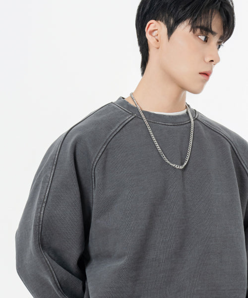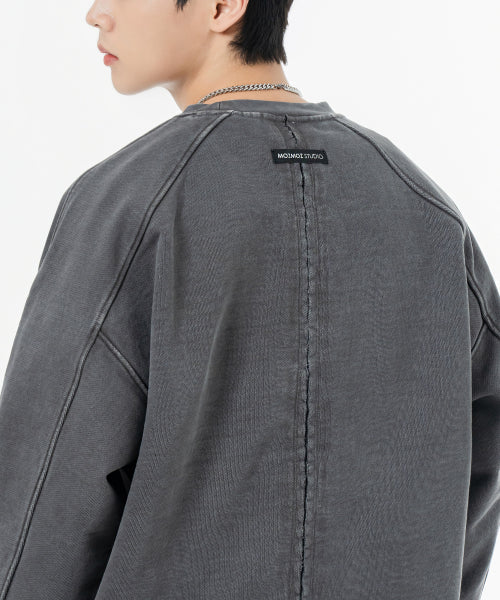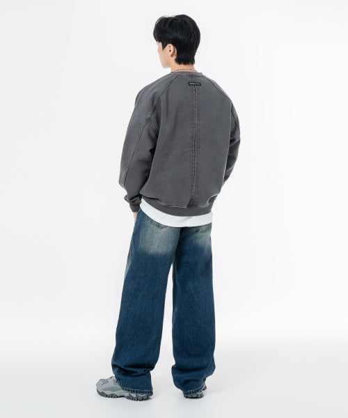 헤비 웨이트 피그먼트 나그랑 뒷절개 오버핏 맨투맨 챠콜