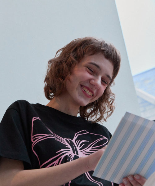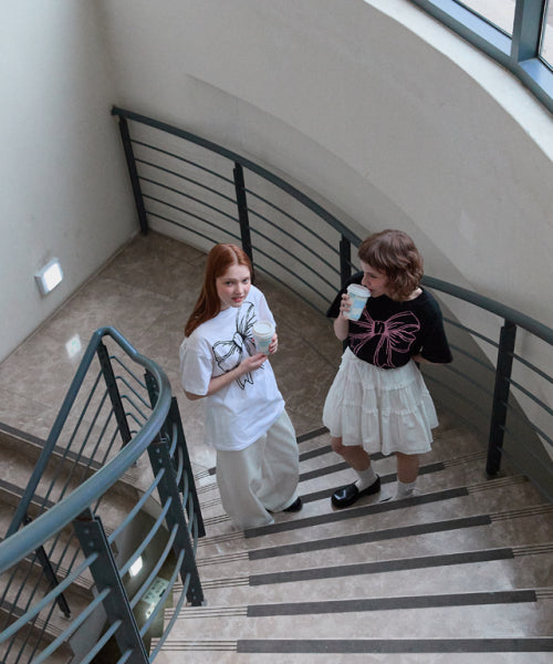 BIG RIBBON LINE T SHIRT BLACK PINK