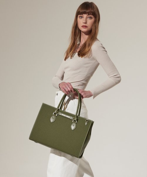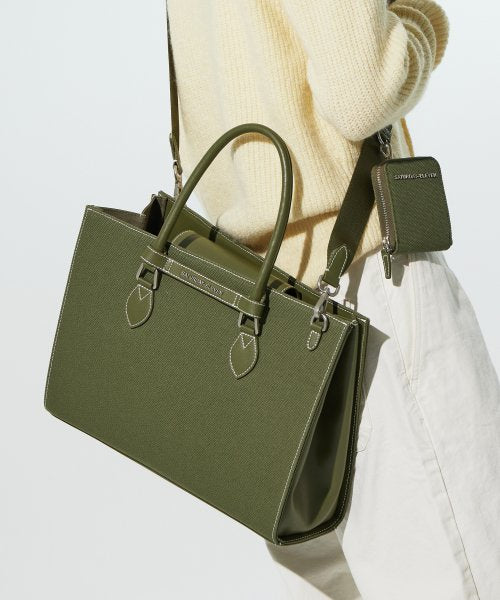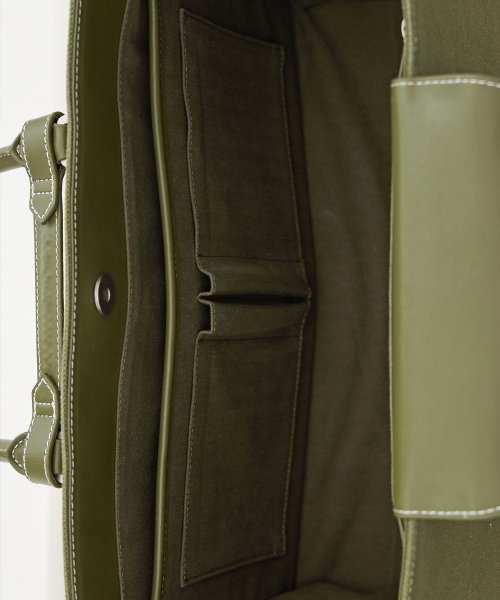 NO.46 캔버스 레더 브릿지 토트백 M _ 카키